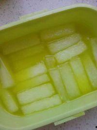 4. 冷藏:将调好味的小小条吃瓜放入冰箱冷藏,口感更佳。